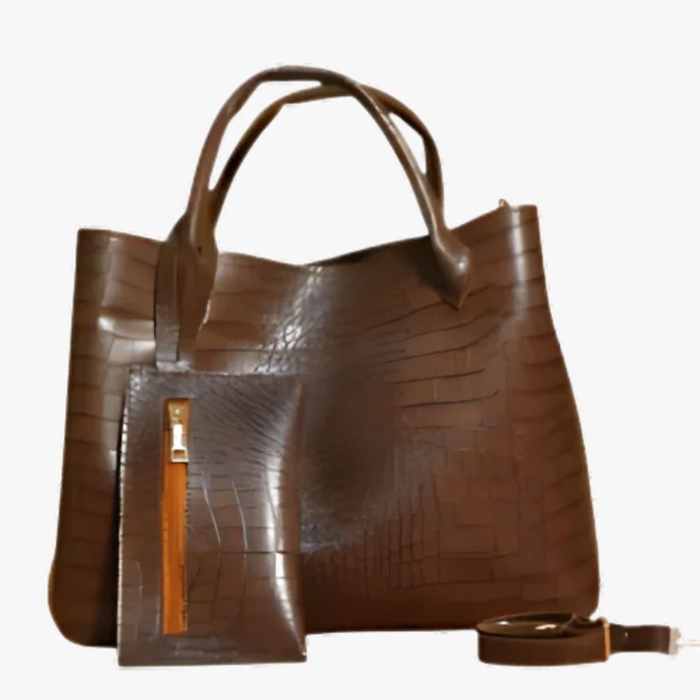 Meet the Fuax Krok Satchel—where fashion and eco-friendliness go hand in hand. Made from soft, long-lasting PU faux leather and surface finished like that of a crocodile skin , this vegan alternative is both classy and functional. Its anti-scratching and water-proof material guarantees durability, and the timeless gold hardware provides a dash of glamour. Roomy enough to carry all your must-haves—phone, iPad, wallet, lipstick shades, and more—it’s ideal for hectic days or fashion-forward nights. With its multiple carrying possibilities, you can carry it as a shoulder bag or tote bag. Whether at work, at the shop, or for evening outings, Faux Krok Satchel is your convenient accessory for carefree chic.