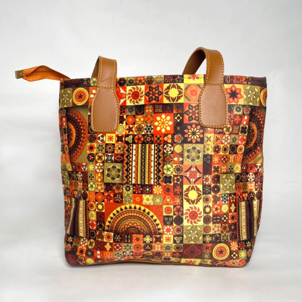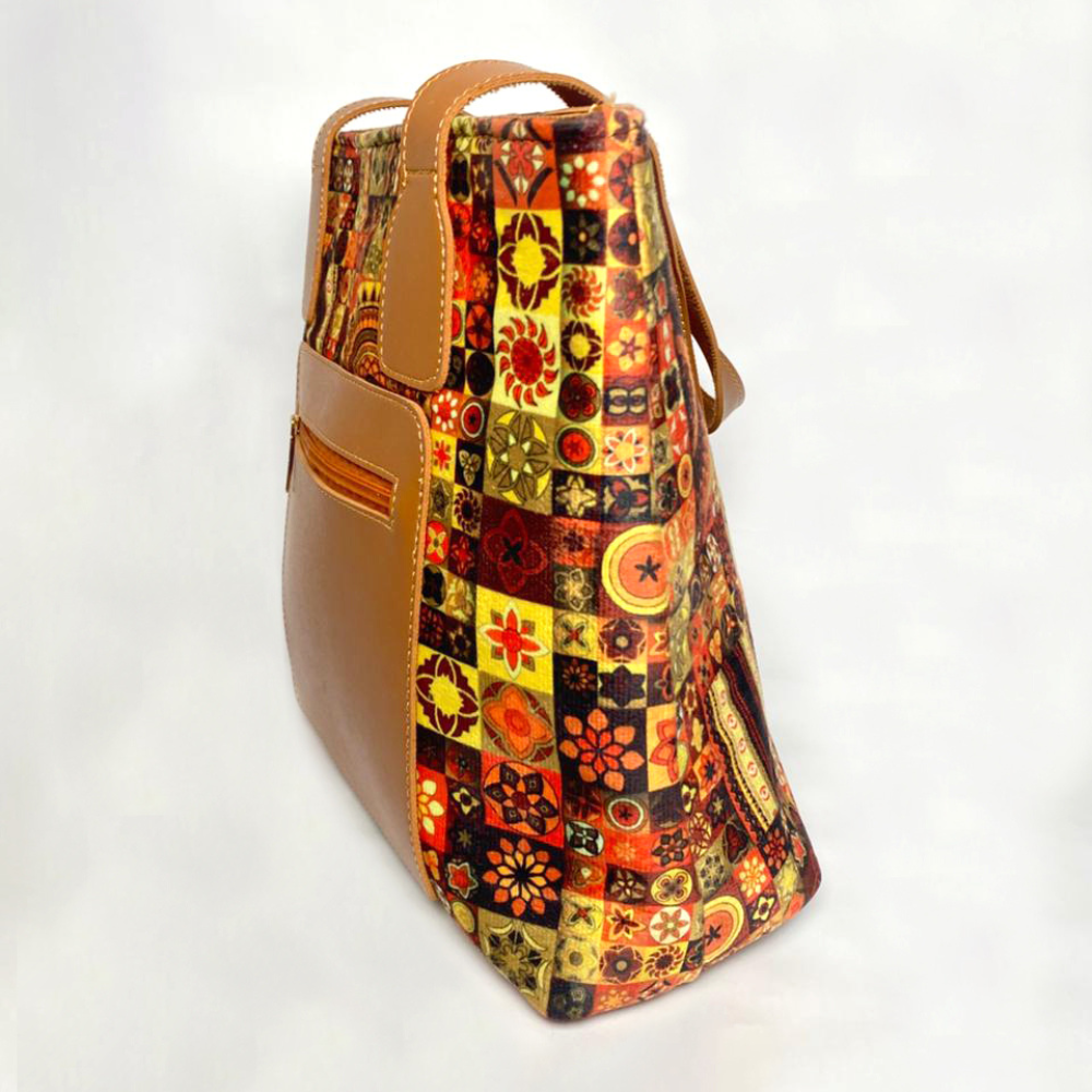 Designed to suit every event, this chic Tote Bag will raise your style to a new level. With bold, eye catching colours and a modern, geometric motif, it gives your outfit a new, look. With its simple yet sophisticated style, it is ideal for every occasion, be it a visit to a mall or a relaxed walk through the bazaar. Functional and stylish, this tote offers ample room to transport more as well as your must have items. Its luxurious feel is further improved by the soft, velvety fabric exterior, turns every touch into a delight. Elegant, versatile, and functional— it form perfect complement for any excursion.