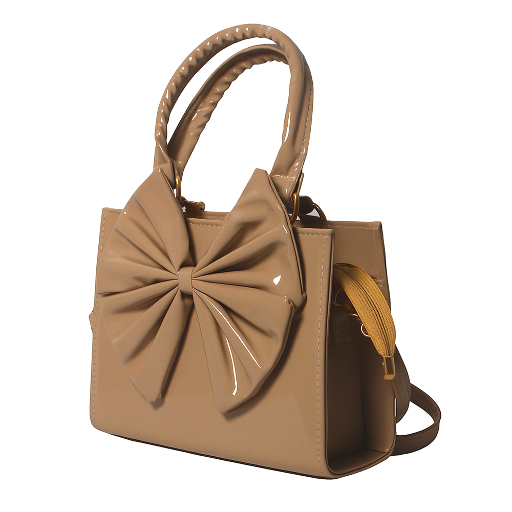 This bag is crafted from premium glossy (PU leather) with a smooth, slightly shiny finish. The soft nude mauve shade adds a touch of elegance, making it perfect for both everyday style and special occasions.