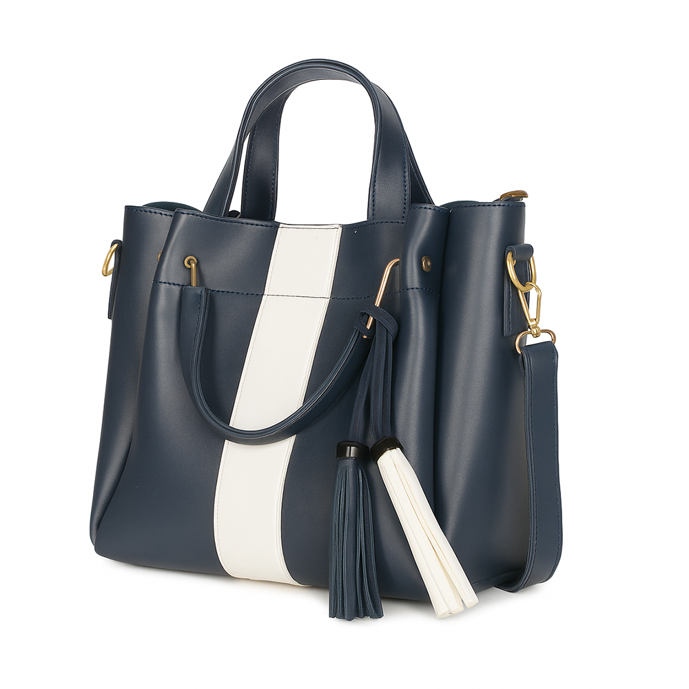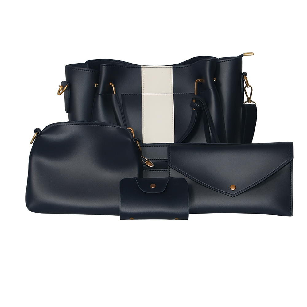 Women Fashion 5 piece Bag set, in two color tones, pushes our Alpha series to the next level. With this collection you find the ideal combination of style and functionality. This set of Hand Bags is made to cater to all your requirements. Just Like the Alpha series, this set also comes with a stylish shoulder bag, a small hand pouch featuring a gold metal chain, and a large makeup pouch to store your necessities separately. These bags are made of high-grade PU leather. This makes them easy to clean and serves you for a long time. They feature a strong handle, ornamental tassel, and a slender metal cum leather handle, the bags bring sophistication to any dress code. Comes in 7 beautiful colors, the ultimate set is ideal for daily wear or special events.