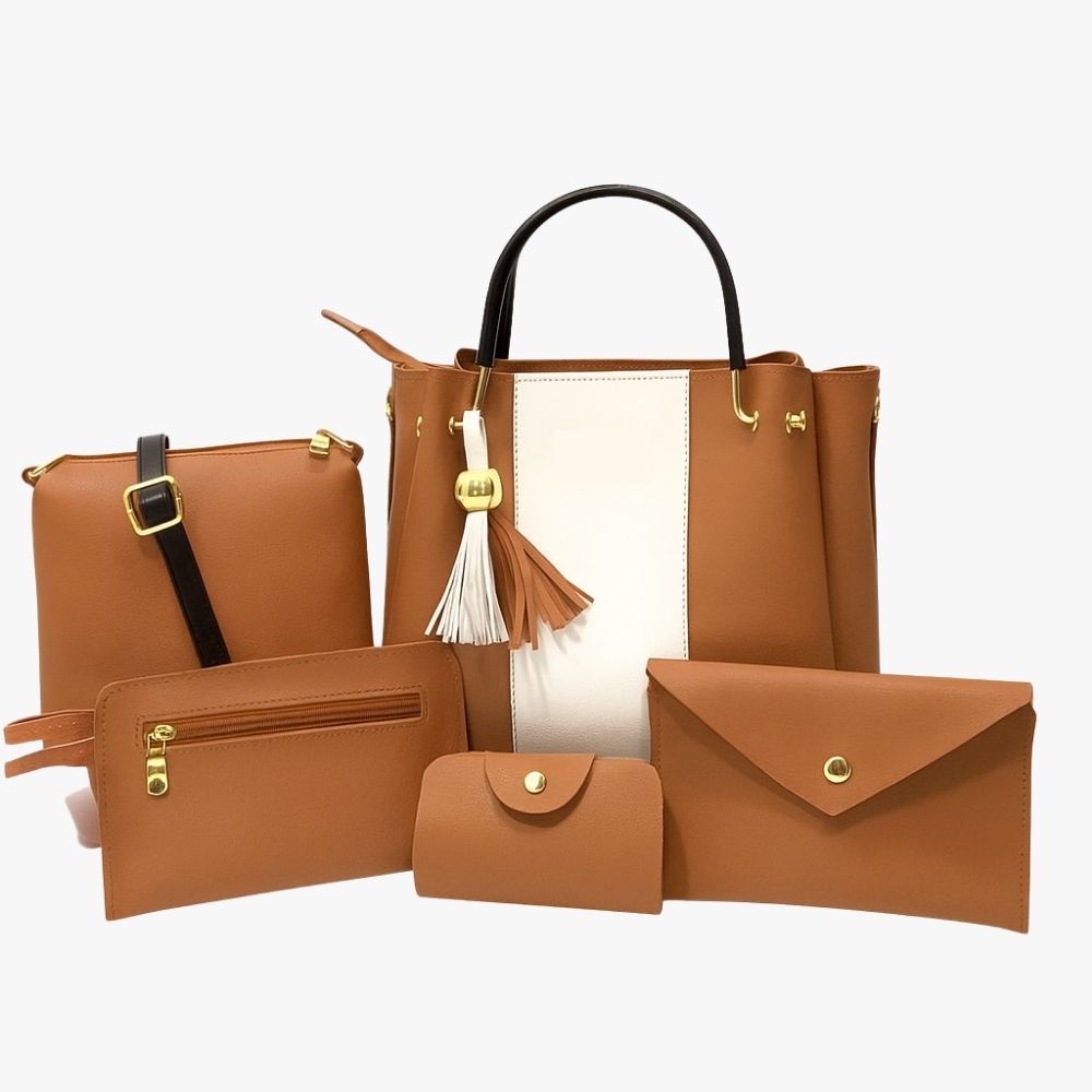WOMEN FASHION BROWN 5 PCS HAND BAG