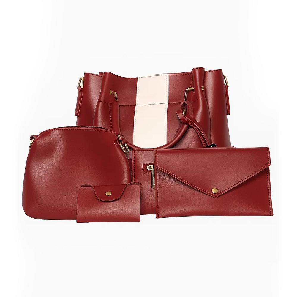 WOMEN FASHION MAROON 5 PCS HAND BAG